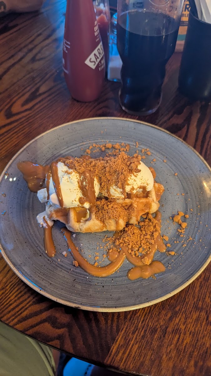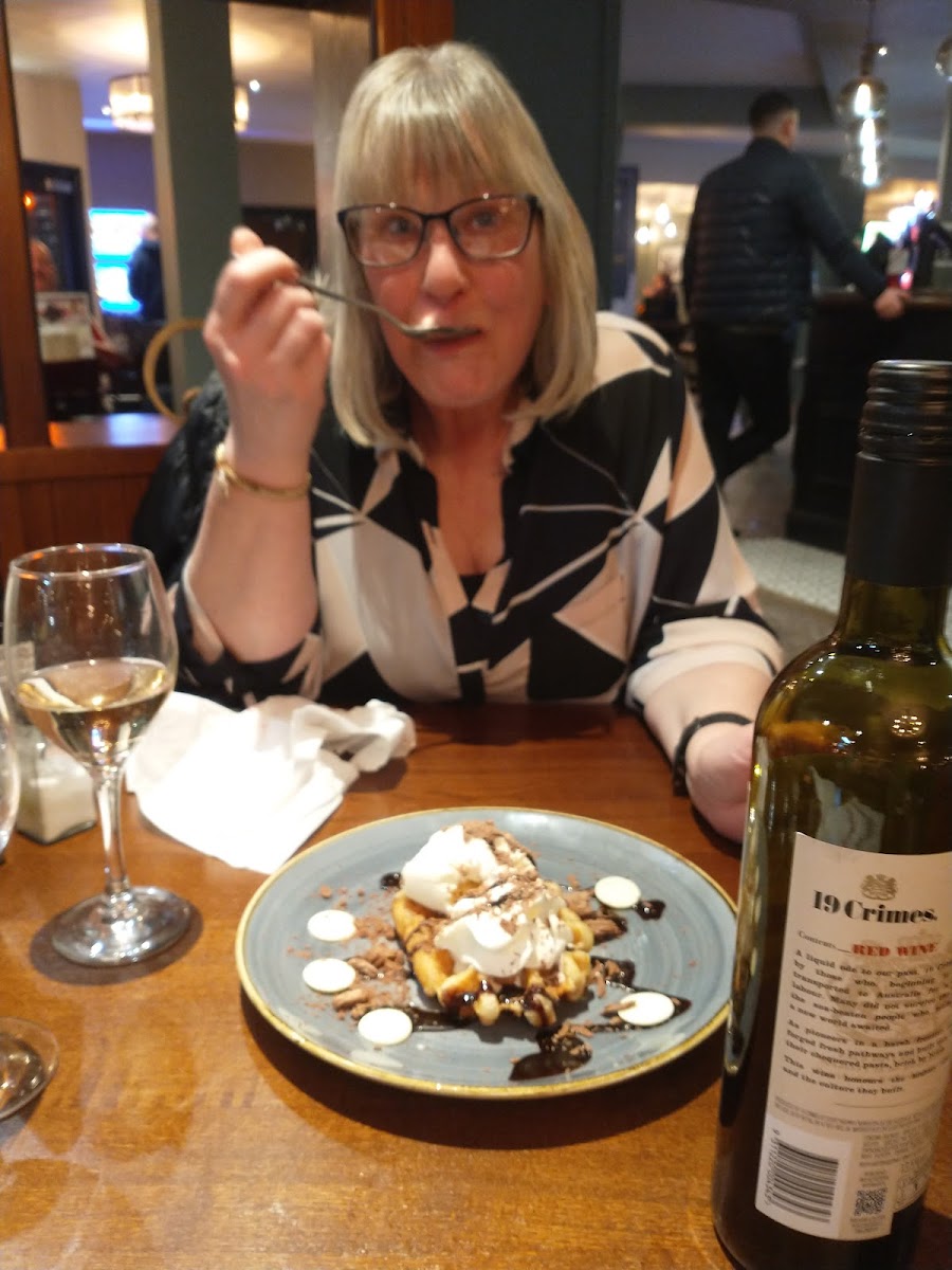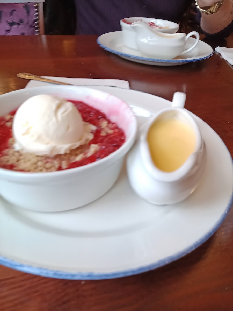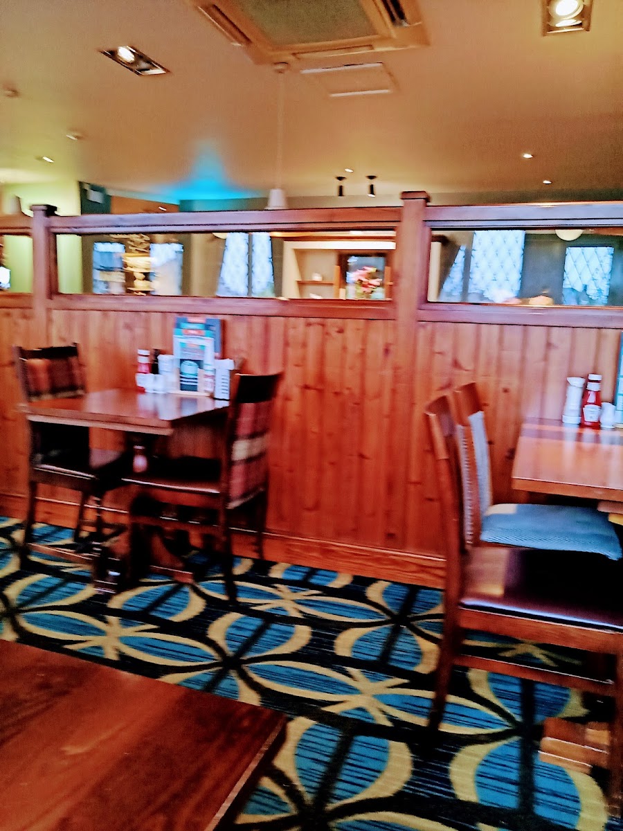Lovely atmosphere, soon as we walked in a lovely smiling lady greeted us and took us to our table, it was Sunday so tea time so not to busy although the football was on the TV there was plenty of quiet tables. A good menu lots to choose from, my partner got a steak with all the trimmings I got sizzling chicken on a bed of beautiful cooked char grilled veggies and a bowl of lovely hot chips we got a desert of apple and black berry crumble with ice cream and a jug of delicious custard the portions were massive , I have got to say it was one of the best meals I have had anyway, so guess what guy's I will be going back quite often and recommending this hotel to family and friends